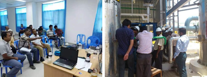 泰國某橡膠廠:該項目是我司優(yōu)質(zhì)代理商配套項目,現(xiàn)場總共三期,全部使用我司后處理設(shè)備;客戶通知我司現(xiàn)場有一臺冷干機,一開機就高壓保護,無法正常使用;經(jīng)過我司售后工程師的探討分析和現(xiàn)場試驗得知是因客戶冷卻水安裝不合理造成,經(jīng)更改管路后得到解決,后續(xù)又對現(xiàn)場所有設(shè)備做全方位檢查以及現(xiàn)場人員培訓(xùn);此后我司售后人員又陸續(xù)對現(xiàn)場進行跟蹤回訪,近兩年設(shè)備一直穩(wěn)定運行,客戶對我方售后人員專業(yè)度非常滿意。