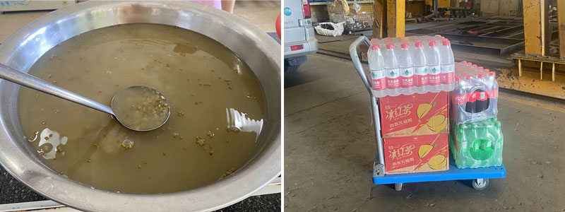 公司食堂每日精心熬制綠豆湯,供車間員工飲用,一碗綠豆湯,看似普通,卻在這炎炎夏日為大家?guī)砹松眢w上的清涼,更讓一線的同事們在緊張繁忙的工作中獲得了片刻的放松與休憩。